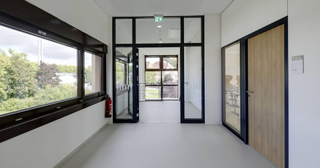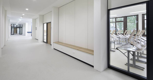 gemeinsames Eingangsfoyer für beide Schulen, 21 Klassenzimmer, 3 Differenzierungsräume, Schüleraufenthaltsraum, 2 Abteilungsleitungsbüros, WCs, Technikräume